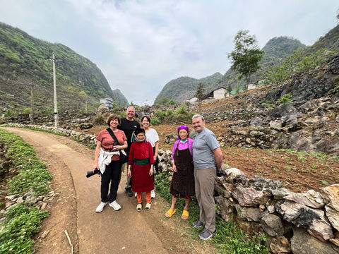 Two senior travelers exploring Ha Giang by jeep with Borderlands Tours and a dedicated local guide
